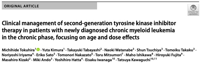 得平道英筆頭の論文がInternational Journal of Hematologyにacceptされました。第二世代チロシンキナーゼ阻害剤においては、若年者 vs 高齢者、用量調節などの解析を行い、高齢者でも若年者同様の成績であり、dasatinib、nilotinib、いずれも減量においても通常量と同等の成績が得られていることを報告しました。