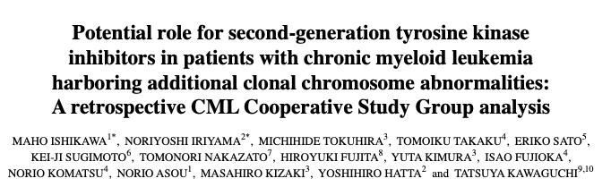 ★ Potential role for second‑generation tyrosine kinase inhibitors in patients with chronic myeloid leukemia harboring additional clonal chromosome abnormalities: A retrospective CML Cooperative Study Group analysis.