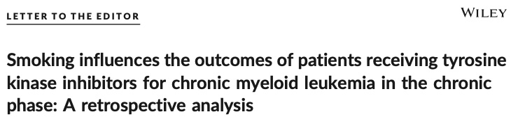 ★ Smoking influences the outcomes of patients receiving tyrosine kinase inhibitors for chronic myeloid leukemia in the chronic phase: A retrospective analysis.